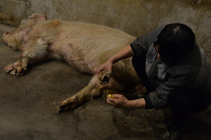 14岁猪坚强无法站立 饲养员称可能即将离去