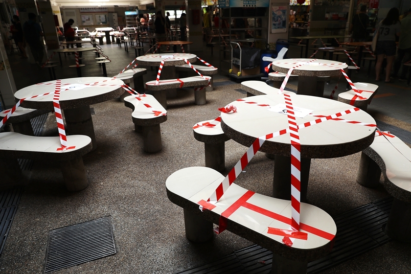 当地时间2021年5月16日,新加坡一餐厅收起桌椅响应政府政策。图/人民视觉