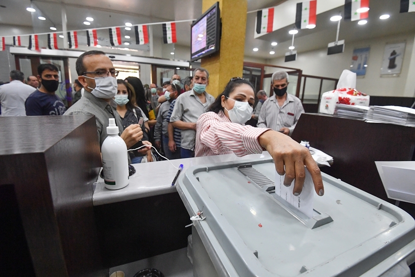 当地时间2021年5月26日上午7时,叙利亚大马士革,叙利亚总统选举投票正式开始。根据叙利亚内政部公布的数据,叙全国共有超过1800万选民,叙境内共设立约12000个投票站,选民可凭身份证到任意投票站投票。图/人民视觉