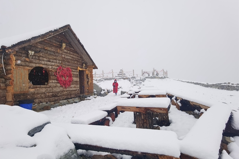 8月25日,四川达古冰川迎来立秋后第一场雪,海拔4860米的雪山之巅被茫茫大雪覆盖。图/视觉中国