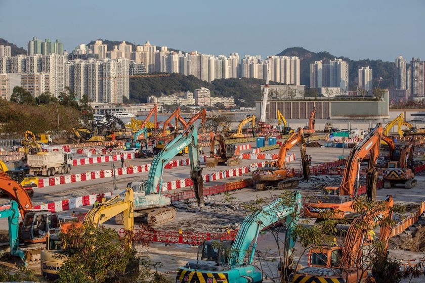 2022年2月23日,中国香港,启德邮轮码头隔离设施正在加紧建设中。由中国建筑国际集团设计建造的中央援建社区隔离治疗设施于19日开工建设,均为永久性设施,分别位于香港竹篙湾和启德码头,两处隔离设施均投入使用后,预计将为香港提供约9500个隔离单位。图/视觉中国