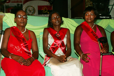 2008年4月2日,安哥拉,参加“地雷小姐”选美比赛的女子。这些在地雷中幸存下来的残疾人想通过这样的活动得到社会认同,证明他们同样有价值。约有2.3万人在安哥拉的地雷爆炸中受伤,并且仍然有好几百万的为爆炸地雷仍存在隐患。 STRINGER/东方IC