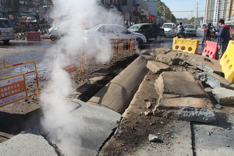 济南地下热力管道爆炸掀翻路面